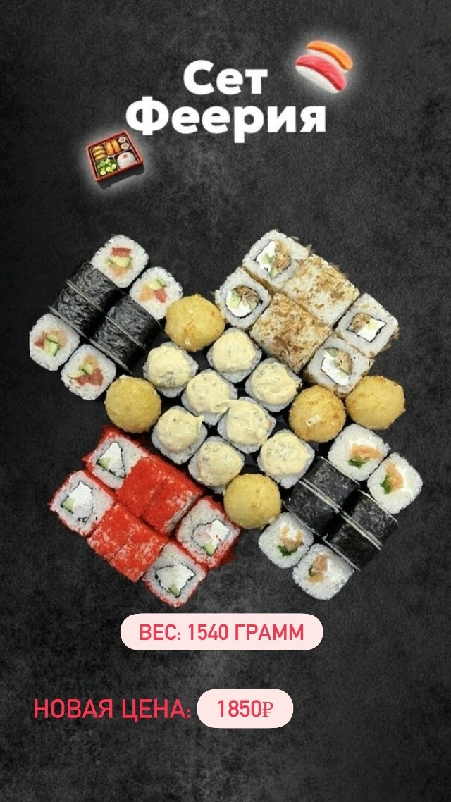 Никко ролл. рис.шарики с сыром. мичиган. футомаки. калифорния кани. саппоро вес 1,540 гр