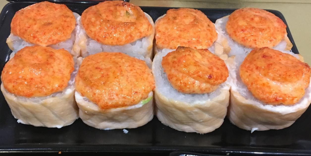 Рис, сливочный сыр,лосось, соус лава